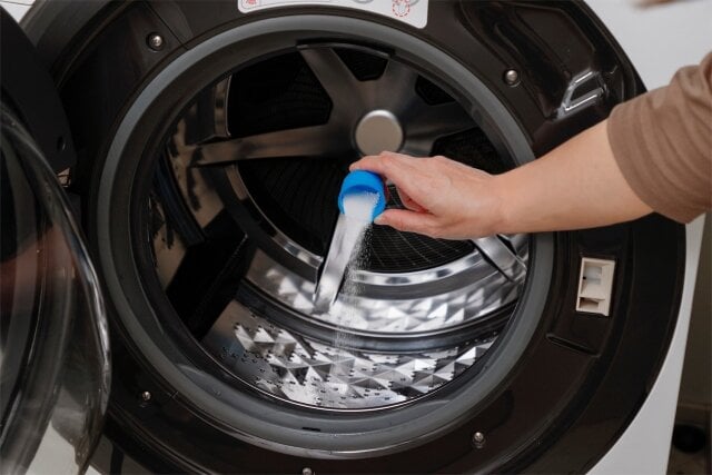 洗濯洗剤を使ういつもの洗濯にオキシクリーンを足すのが「オキシ足し」。洗濯槽に直接オキシクリーンを入れ、洗濯洗剤を分量分入れ、そして洗濯機に衣類を入れて通常の洗濯をすれば、オキシクリーンが漂白と消臭を行ってくれます。