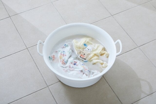 なお、子どもが食べこぼした衣類のシミ抜きをしたい場合は、下記の「オキシ漬け」をしてから通常の洗濯を行うといいですよ。