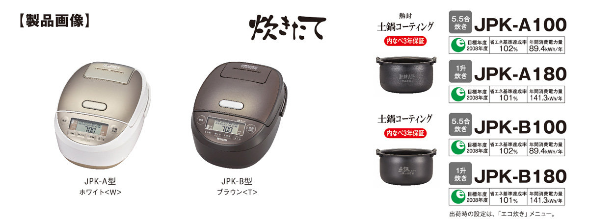 ※1:JPK-A型のみ。JPK-B型は土鍋コーティング、3層遠赤厚釜