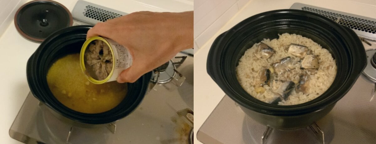 魚を煮込んだ旨味がしっかり出た缶汁を出汁に利用する「いわしとごぼうの炊き込みご飯」に編集部スタッフもトライしてみましたが、手の込んだ出汁を作らずとも深みのある味わいに仕上がる簡単さとクオリティにビックリ! 家族にも振る舞ったところ大好評でした。