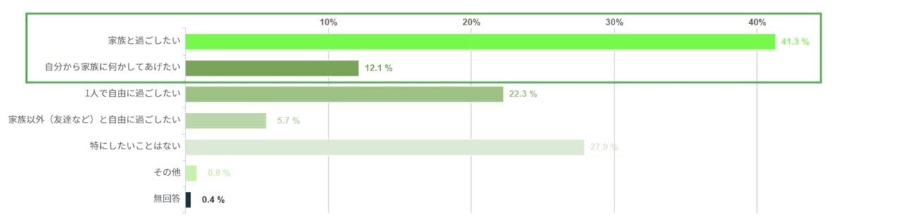 母の日との格差を感じているパパも5割近く。けれども「父の日に自由な時間がプレゼントされたらどうしたいか」という質問に対して、「家族と過ごしたい」「自分から家族に何かしてあげたい」と答えたパパが53.4%と過半数を占めたのでした。