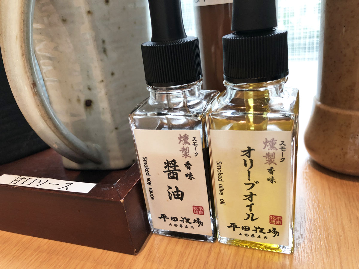 平田牧場に来ました。ここは言わずと知れたとんかつ屋さんです。ここのテーブルにも燻製調味料が置いてありました。