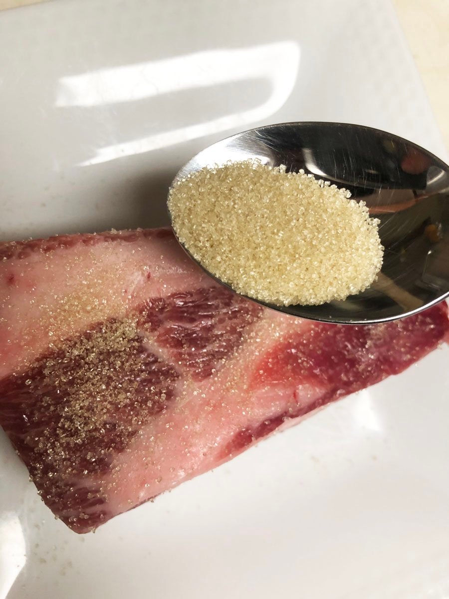 砂糖大さじ1を豚肉全体にまぶします。