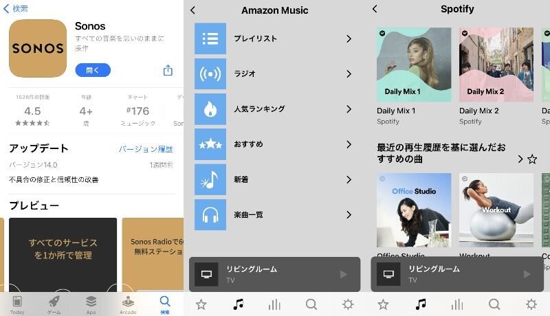 ちなみにSONOSのサウンドバーには、いわゆるリモコンが付属していません。専用アプリをダウンロードして初期設定の他、音量操作、接続デバイス・サービス切替などを行います。