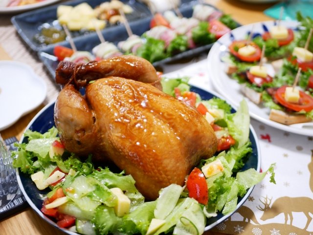 クリスマス料理のド定番といえばやっぱりローストチキン。できれば骨付きチキンの方がクリスマス気分も盛り上がるので、まるごと鶏一羽かチキンレッグを買ってレッツ・チャレンジ!