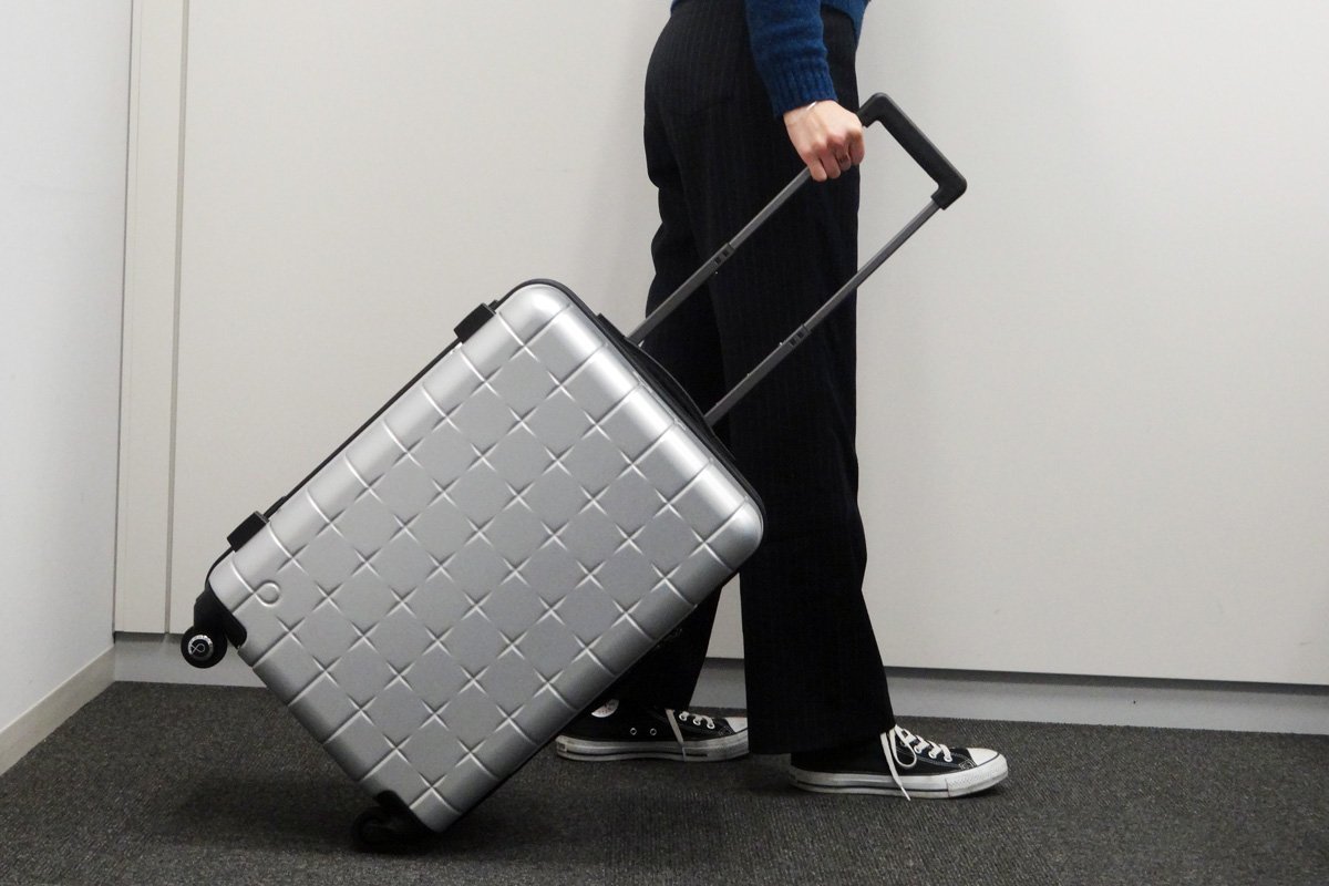 4輪キャスターであれば、スーツケースは地面に対して水平に持ち、キャスター4点への負荷が均等に掛かるよう意識してください。