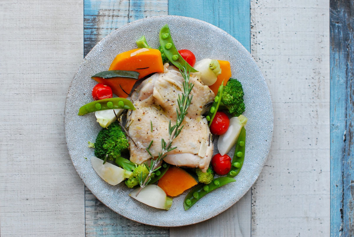 「Portable Multicooker」は、ヘルシー料理を作るのにも重宝します。タンパク質・糖質制限を意識するなら、ヘルシーなハーブチキンと彩り蒸し野菜はいかがでしょうか。